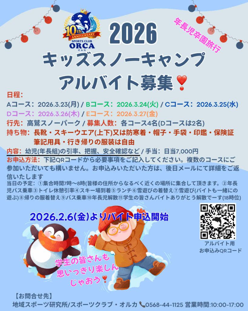 2026年2月5日 2026年2月5日 健黒田 未分類 2026キッズスノーキャンプアルバイトについて お申込み 参加コース(参加希望コース全て✅してください) Aコース 3/23(月)Bコース 3/24(火)Cコース 3/25(水)Dコース 3/26(木)Eコース 3/27(金) 氏名(漢字表記) しめい(ひらがな) 性別 男性女性 学校名 学年 生年月日 ※年は西暦で入力してください。 例)2002.6.20 アレルギーの有無 ありなし アレルギーありにチェックされた方は詳細をご入力ください。 連絡先 メールアドレス 郵便番号 住所 ウエア 持参するレンタルする 「レンタルする」を選択された方へ ウエアサイズ メッセージ本文 (任意) ※内容に間違いが無ければチェックして送信してください。 Δ FacebookXBlueskyCopy